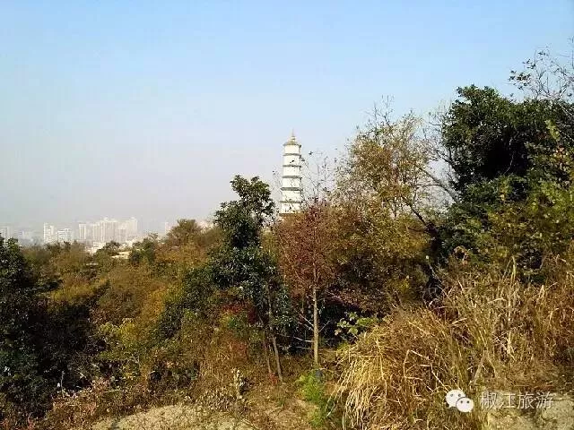 阳光温暖而明亮,风舒爽又清新。举目之间,山林呈现出斑斓的色彩,黄色的梧桐,红色的枫叶,还有那些依然碧绿的翠竹。最醒目的是那些红叶,在夕阳的余辉中,显得更加红艳。站在塔下台基,可俯瞰椒江全城,风景甚为美丽。