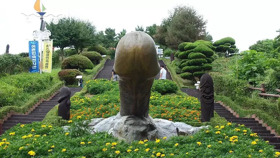 海神堂公园是以崇拜男根为主题而建造的主题 公园,内部由海神堂、男根雕塑公园、三陟渔 村民俗展示馆等组成。在男根公园内共有65个 以男根为原型而塑造的雕刻物,公园背后紧邻 东海,景色蔚为壮观。