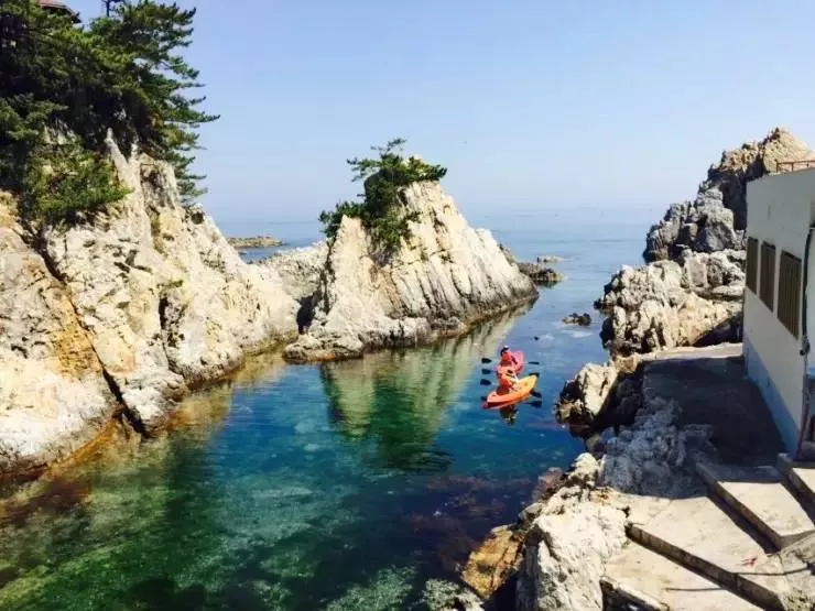 迎着海风,走在指压按摩路上也是一种享受, 在150米长的按摩路上,一边是广阔无限的大海, 一边是嶙峋陡峭的岩石,景色迷人,美轮美奂。