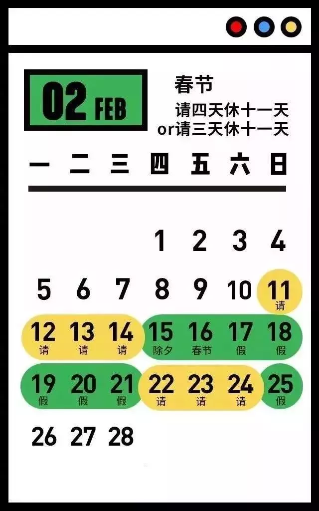 从除夕的那周周日开始只要你敢请,小长假期不是梦!为期15天的春节假期就在你眼前。