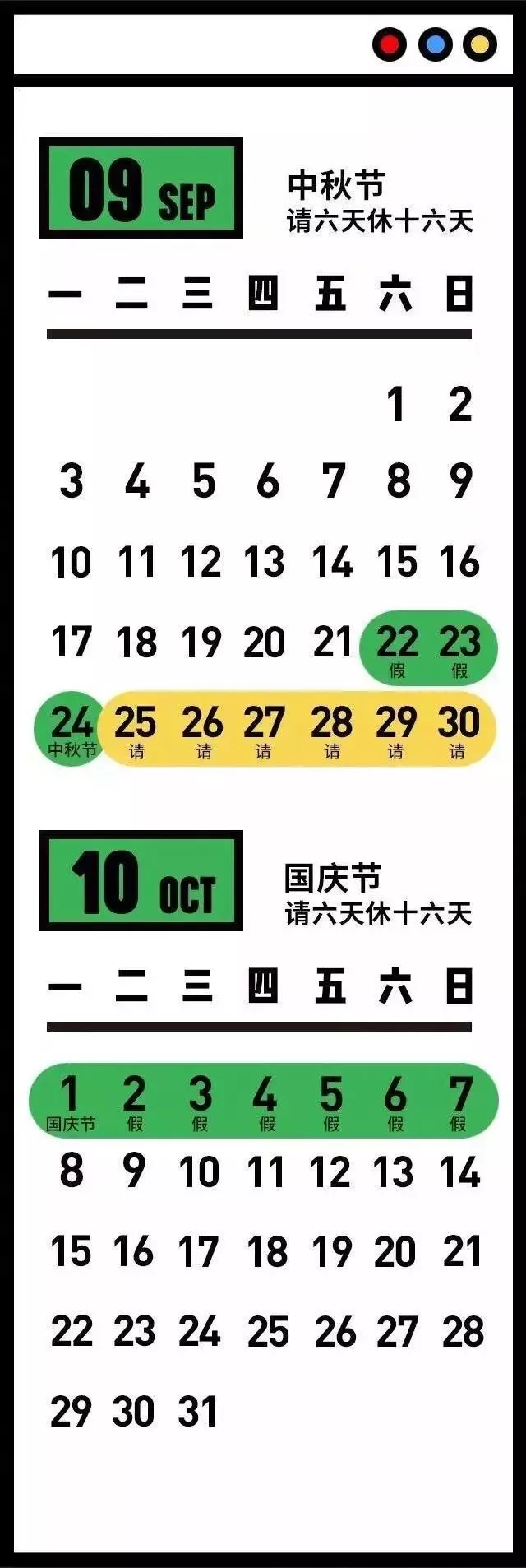 这个月请6天假就可以休息16天?应该庆幸还好中秋错过国庆,不然又少了几天假。如果你有7天年假,此时不用更待何时?