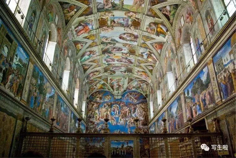 当年教皇朱利二世默许了米神把耶稣画成肌肉美少男年轻的圣母优美扭动单独看每个造型都堪比大石雕一般沉重有力就像每一块建筑材料都精彩绝伦不一定就是一座好建筑格列柯的狂言一定是对着《最后的审判》说出的