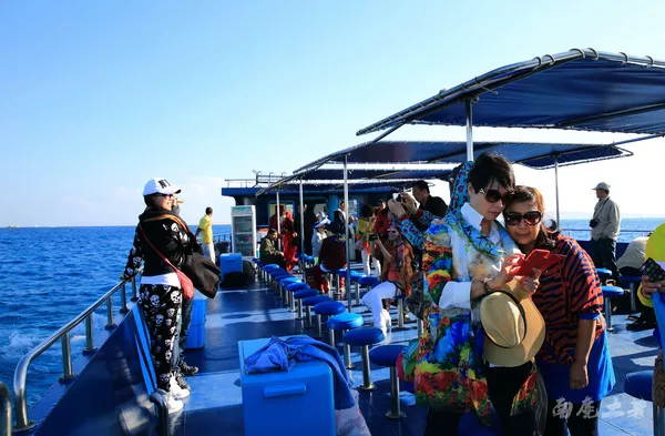 我们坐着玻璃船出海。所谓玻璃船,就是在船舱两侧,镶嵌玻璃作为舱壁,从船舱内可以观赏海底美景。