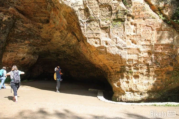 Gutmanis洞穴,位于锡古尔达和图雷达城堡之间河谷旁的峭壁上。洞穴真的不大,深18.8米,宽12米,高10米,不说我们的敦煌、云冈、龙门,连北京的古崖居,它也比不了,唯一能炫耀的是洞穴壁上的岩画、刻字,据说有10000年历史了,被誉为拉脱维亚最古老的旅游景点。这咱比不了,要比我们只能拿周口店猿人洞了。洞穴里有一个泉眼,一条小溪从泉眼中流出。传说小溪中的水来自一个叫Gutmanis女子的眼泪,据说泉水能治病,许多人专程跑来,就是想喝一喝、洗一洗,以求把病治好!