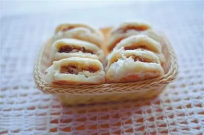 这是赤峰的一种特色食品,源于一种“杈子烧饼”,其用一定比例的油水和面,外用小米面或糜子面擦酥,并涂以酥油,食前火烤片刻即成,内夹熏肉,外焦里嫩。