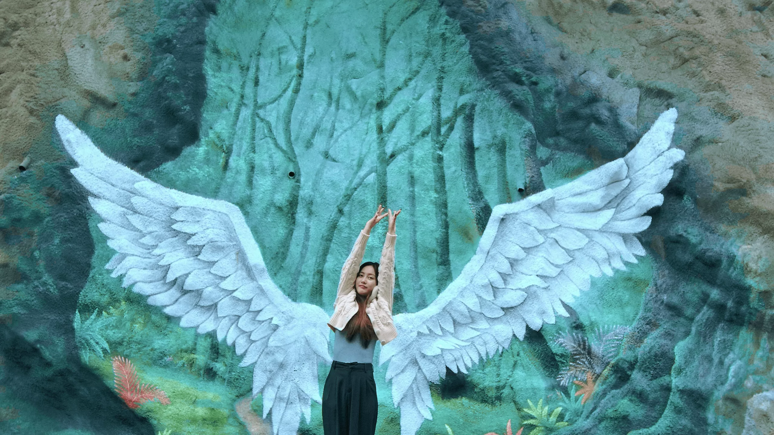 与彩色森林融为一体的3D立体画