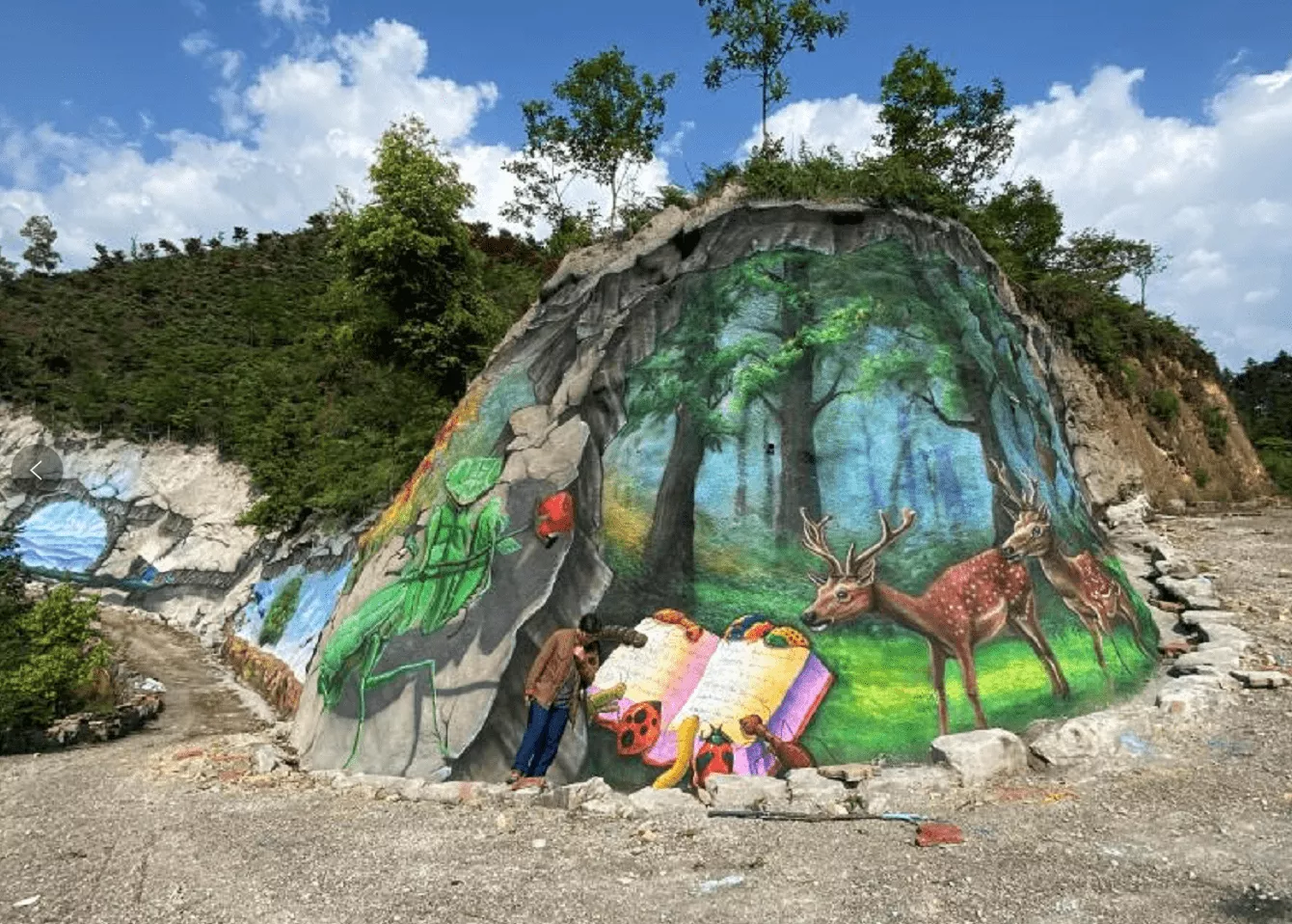 两项吉尼斯世界纪录由彩色森林创始人巫艾玲联合中国职业3D立体画家杨永春等共同构思创作。画作通过表达人类文明进程与自然生态从矛盾到和谐发展的演变历程,启发人们关爱自然、保护生态的意识。作品于2018年9月开始构思设计创作,绘制过程中还克服了山体护坡基础自然条件复杂、山城多雨等不利气候条件,绘制历时近6个月。