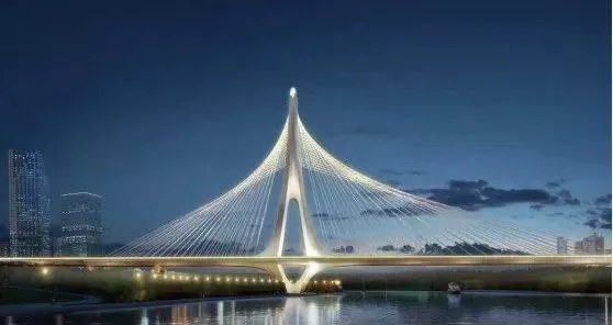 为彰显城市特色,进一步提振城市神韵,柳林大桥的独特造型融入了天府文化元素,通过提取芙蓉花柔美的外形轮廓,独创花苞状的桥塔外形;通过对太阳神鸟造型进行提炼,将桥梁的侧立面构筑成神鸟的外形,反向布置的斜拉索恰似神鸟展开的羽翼,构筑出一幅"金沙神鸟绕日行,锦城芙蓉傍水开"的金乌出蓉图。