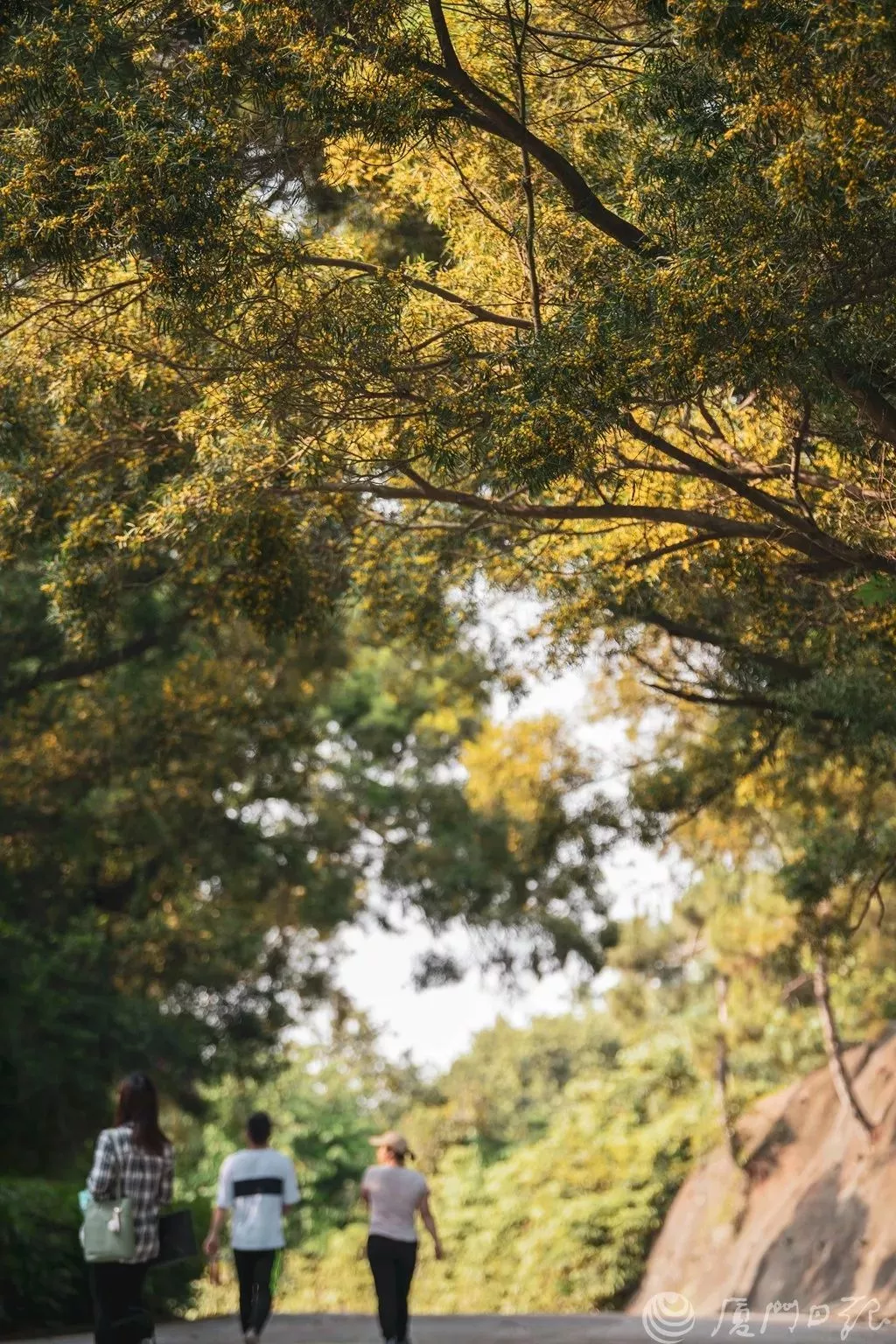 厦门岛内的狐尾山、东坪山、梧村山、五老峰等山体,漫山遍野的小黄花挂满树枝,就像披上了一层的黄金甲,在绿林中脱颖而出。