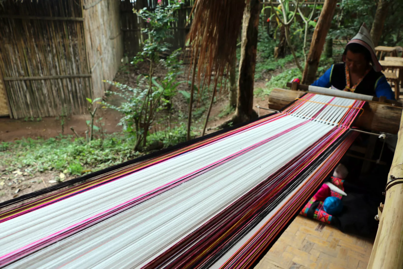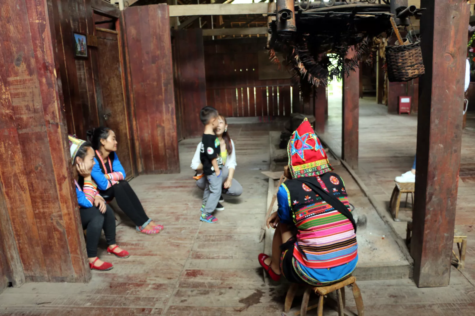 再继续走,可以看到几位奶奶在纺织,她们族内所穿的衣服都是自己纺出来的,很漂亮,当时真想穿上试试。小锟看着老奶奶纺织,很感兴趣,迟迟不想离开。