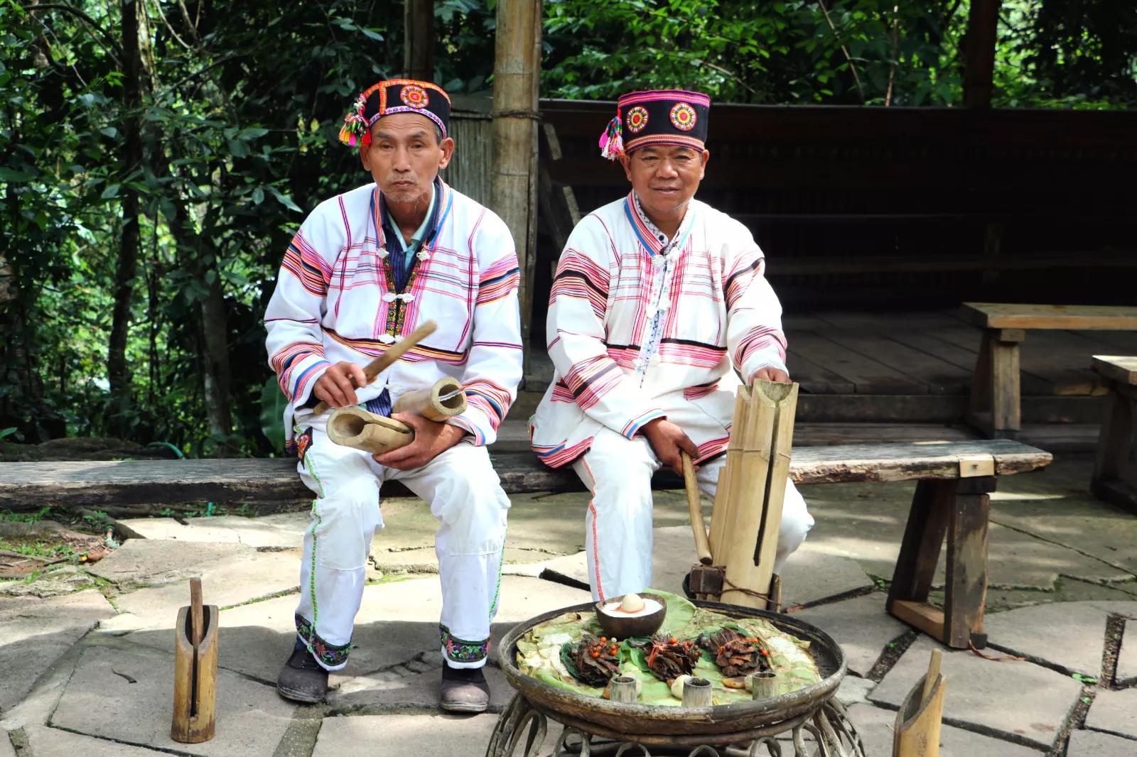 8月13日,当地村民组成的乐队在基诺山寨内演奏基诺族传统音乐。近年来,景洪市基诺山基诺族乡坚持保护传承基诺族文化,助推“文化旅游扶贫”和“文旅融合”发展。当地以该乡巴亚村委会巴坡村小组为基础打造知名旅游景区基诺山寨,集中展示基诺族特色文化,拓宽基诺族相关文化产品的销售渠道,助力村民就业增收。新华社记者 陈欣波 摄