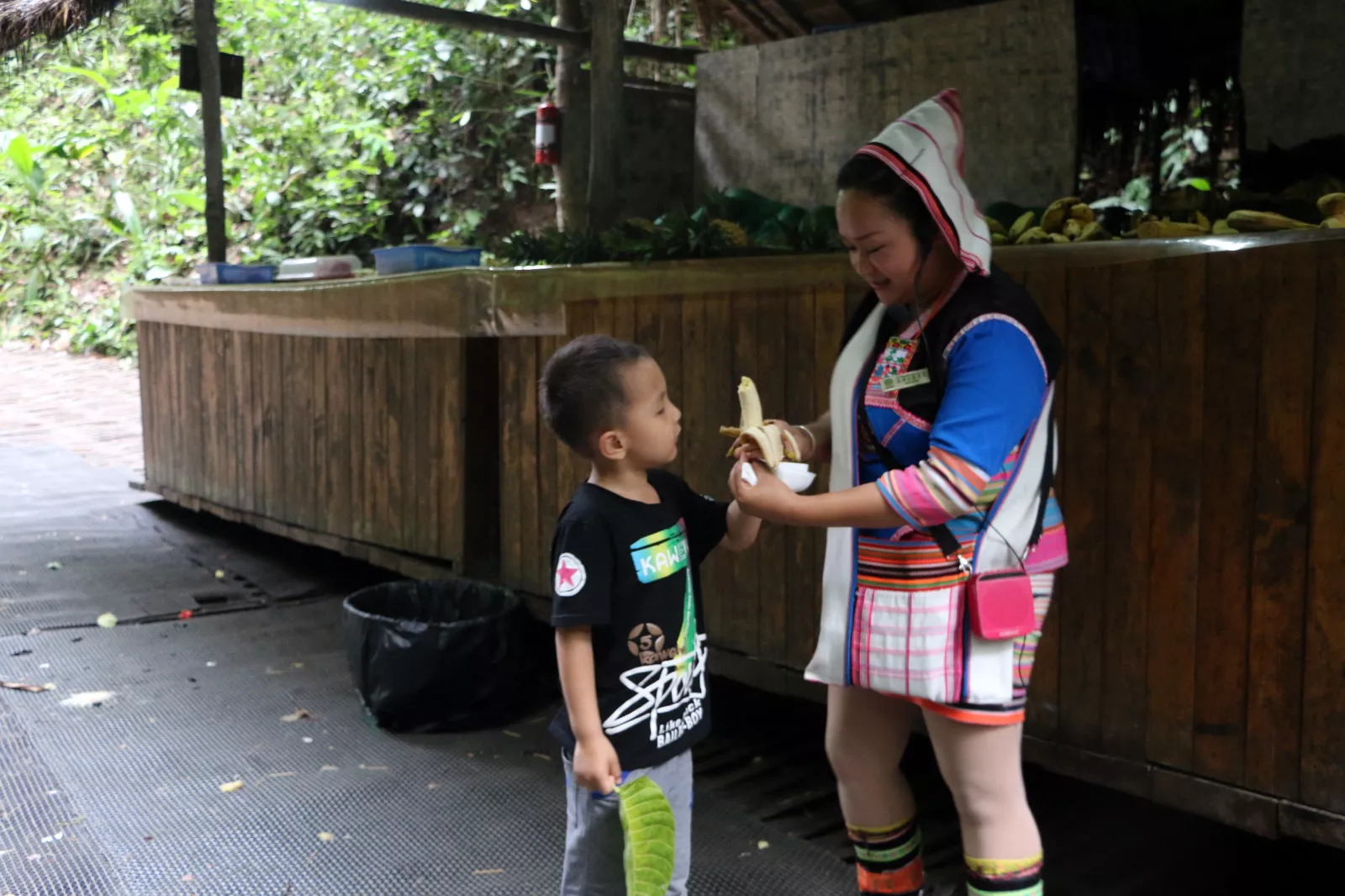 听着这么有趣的民俗,对这个民族也更加的感兴趣。导游就是山寨里的人,她们的家就在山寨中。与我们所理解的家庭结构不同,他们以舅舅为最大,家里舅舅说了算,如果家中没有舅舅,需要在寨里老人的带领下,认大树或者蚂蚁堆作为舅舅,因此在寨子里一些有年头的大树,还有蚂蚁堆,不能轻易去触碰。