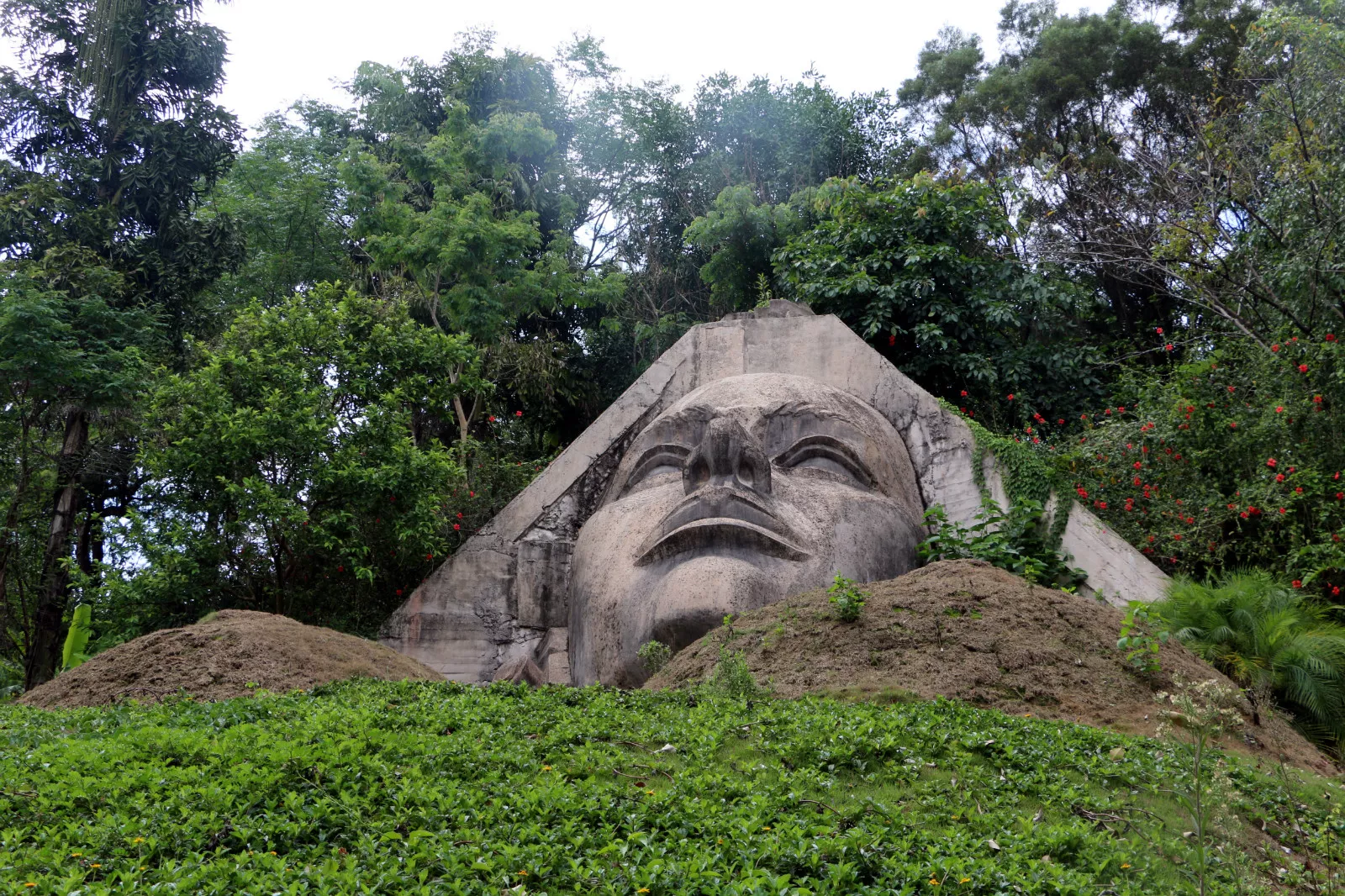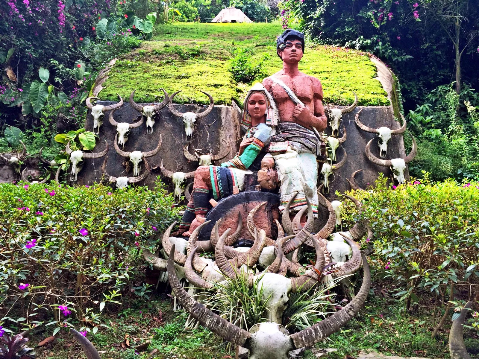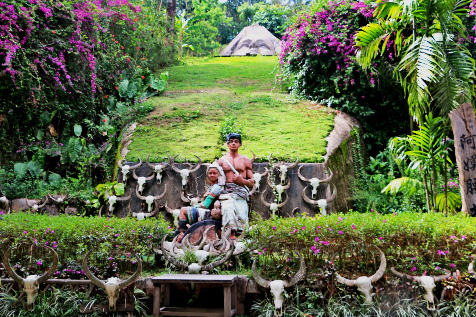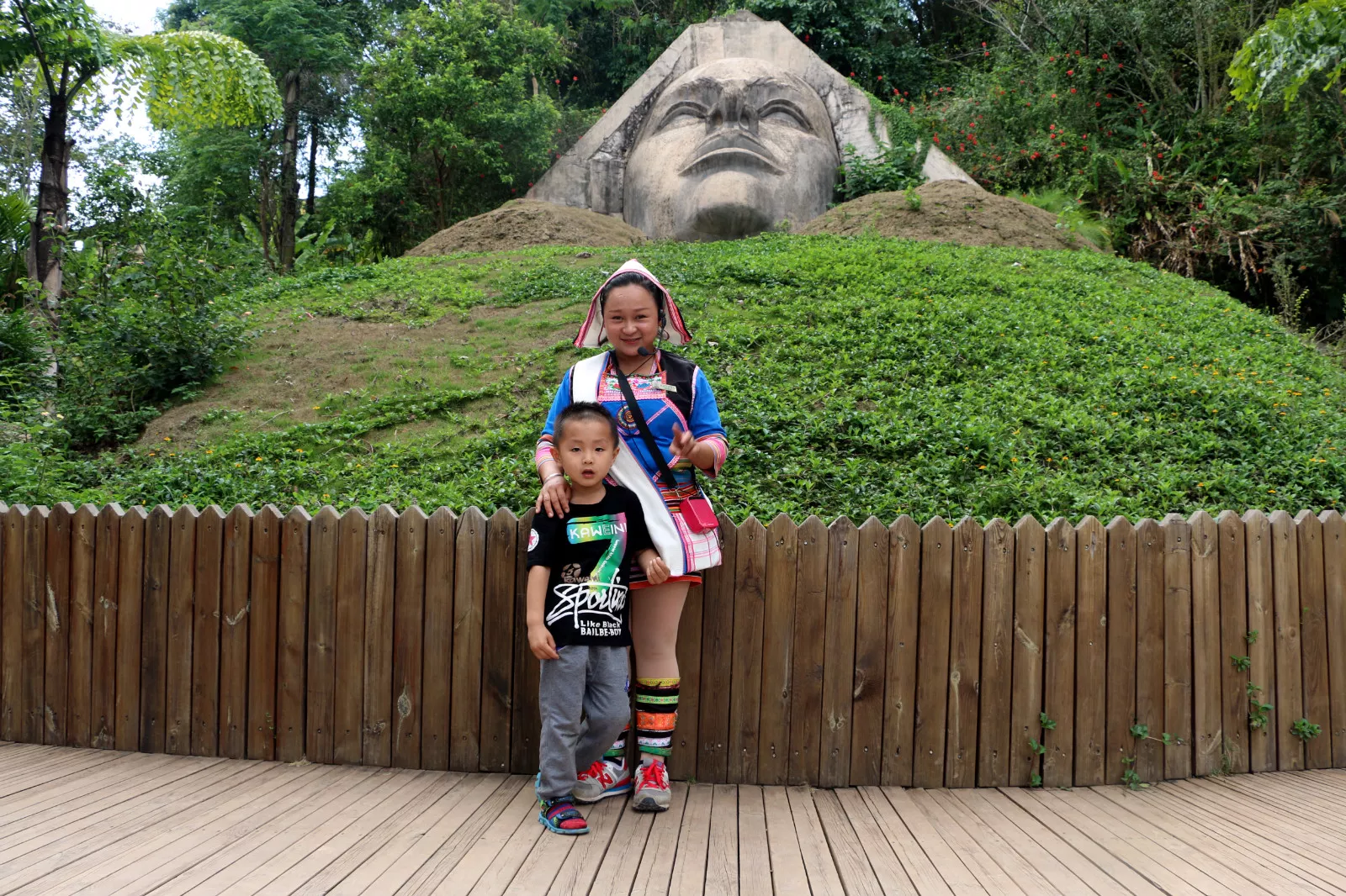 基诺山寨也有美丽的传说,在山脚下就可以看到一个雕像,这是他们的祖先阿腰,一对男女坐在正中间,他们的确是夫妻,只不过他们是亲兄妹,因为一次事件,寨里的人被杀光了,他们兄妹躲过了这场劫难,于是繁衍后代,躺在这座山上的雕像就是母亲。她的手很长,直到我们走在了她的手上,才意识到原来踩在脚下的竟然是她的手臂。