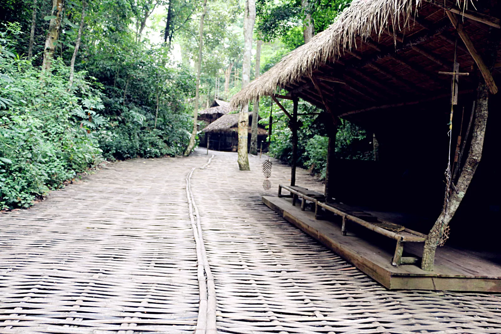 当我们往外面走的时候,脚下的路突然变的柔软起来,低头看去,原来是竹子铺成的路。族人很打趣的说,小心掉到桥下哟,掉下去就到老挝了。好吧,不过真的很舒服。