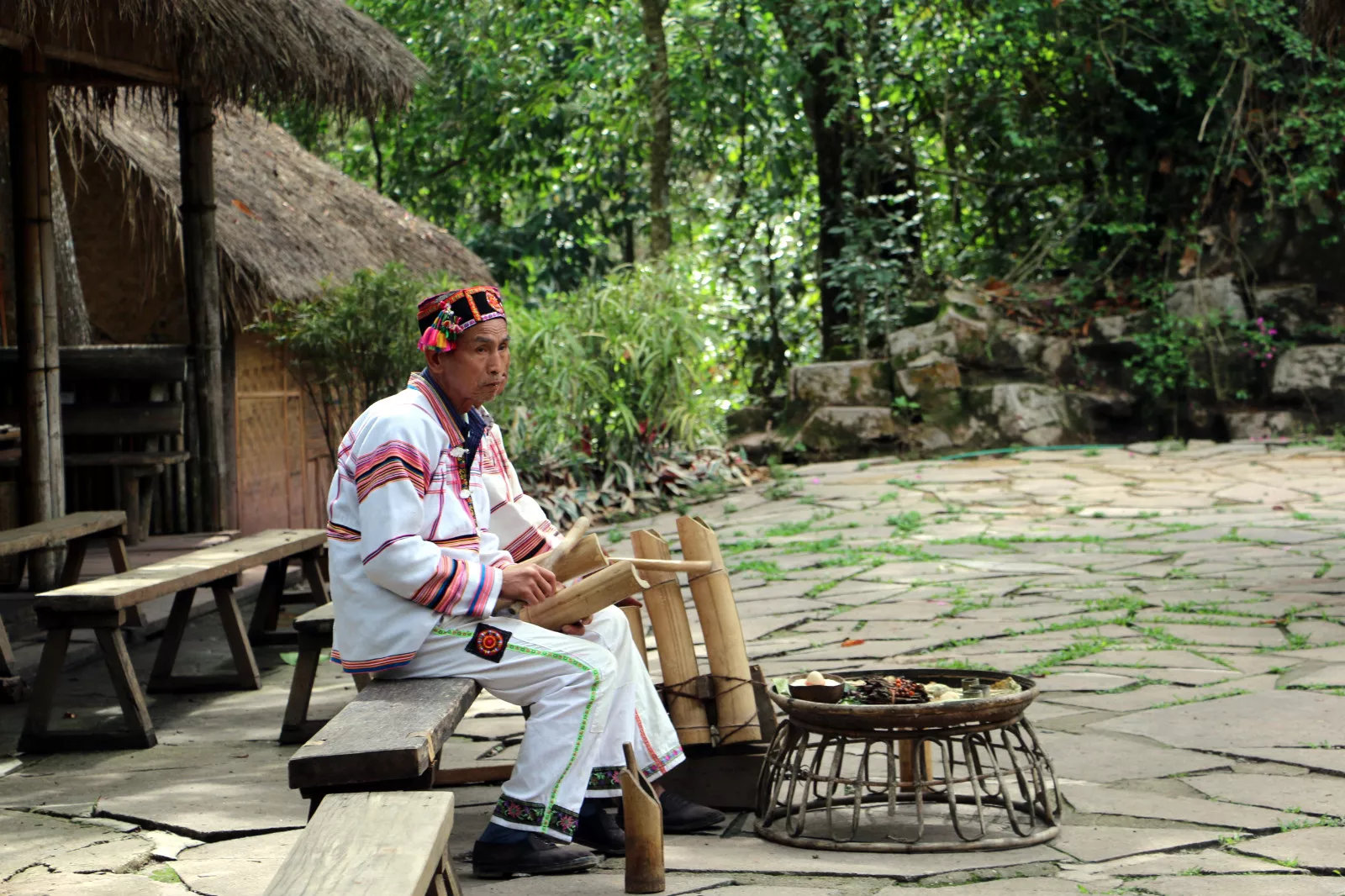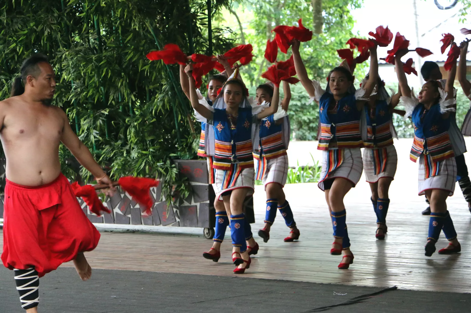 在这里将有一场基诺族传统表演(取火种、吞火)。