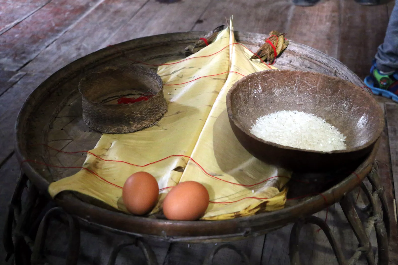 另外爷爷奶奶还在我的手腕上绑了黑白色搭配的细绳,这代表族里最崇高的祝福,女左男右的方式。至今我回来很久了,还在戴着。我想等到自然脱落的时候再说吧。