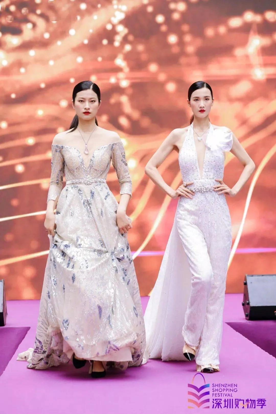 而在美轮美奂的走秀环节中,款款设计臻品在模特们婀娜多姿的演绎中,映射出专属于深圳珠宝的璀璨光华,也令到场嘉宾为之倾倒。