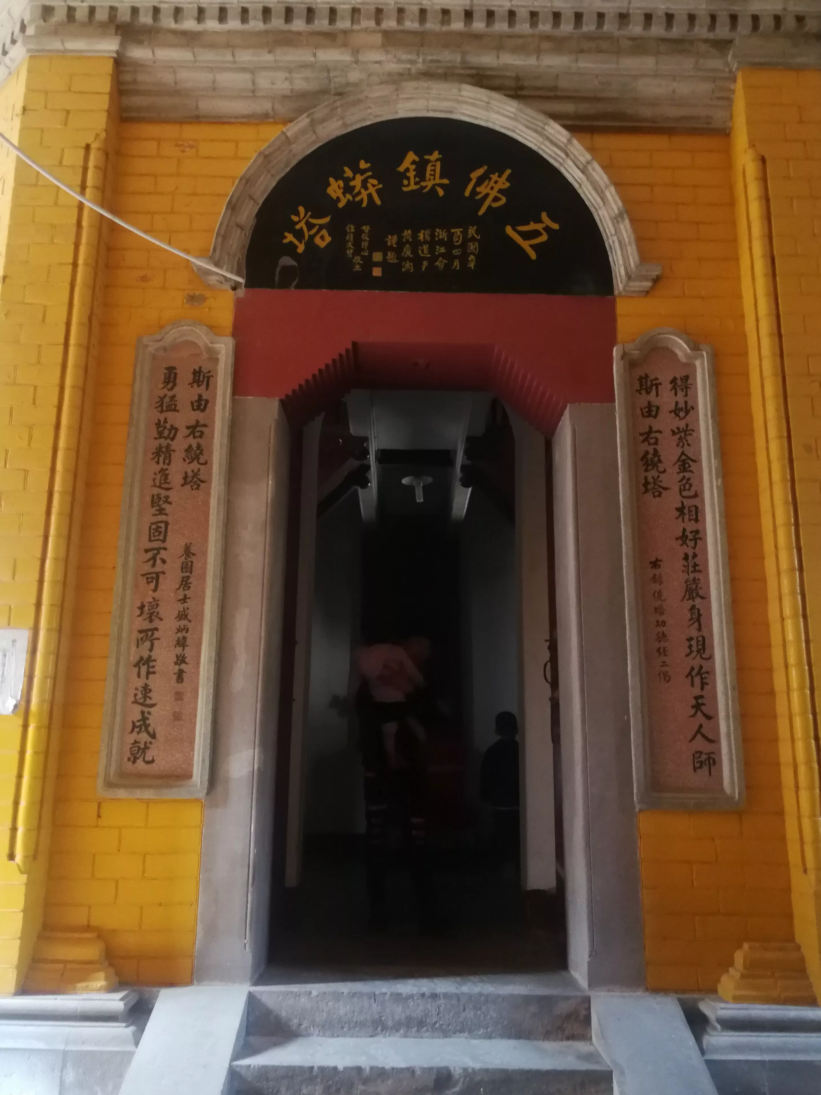 这座塔也叫五佛塔,始建于唐会昌年间,距今1100多年历史,塔高7层,象征七级浮屠。如今的塔是在民国时期在唐塔原址上新建的。据说这座塔平时不对外开放,一直都是闭门。不知道是不是缘分,笔者这次去的时候五佛塔居然开着。古塔虽已逝,但是在这塔内还是可以看到一些古代的牌匾。塔内每层都有一座佛像,在塔的顶层是5座佛像。不知道塔下是否真的藏着一条蟒蛇。