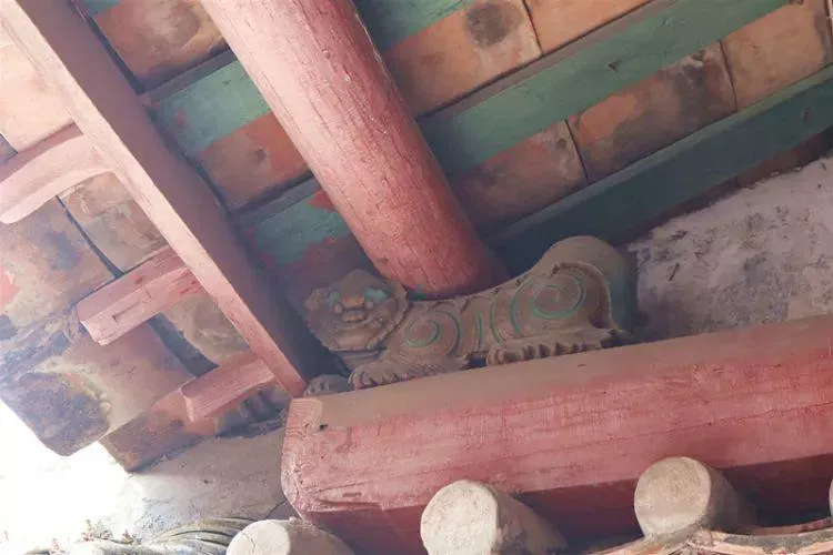 正门上有一方石额,刻着“福田世居”4个楷书大字。潘伟兵引记者入内,“这里主厅分为下、中、上三进。”顶高通透,门上花卉浮雕,红漆有些斑驳,但轮廓清晰,立体感十足;屋檐下画着精美壁画,绘有牡丹、松树、白鹭、燕子寓意吉祥的动植物,色彩至今仍保存完好;中间两条主梁雕满了花草图案,红蓝各一。