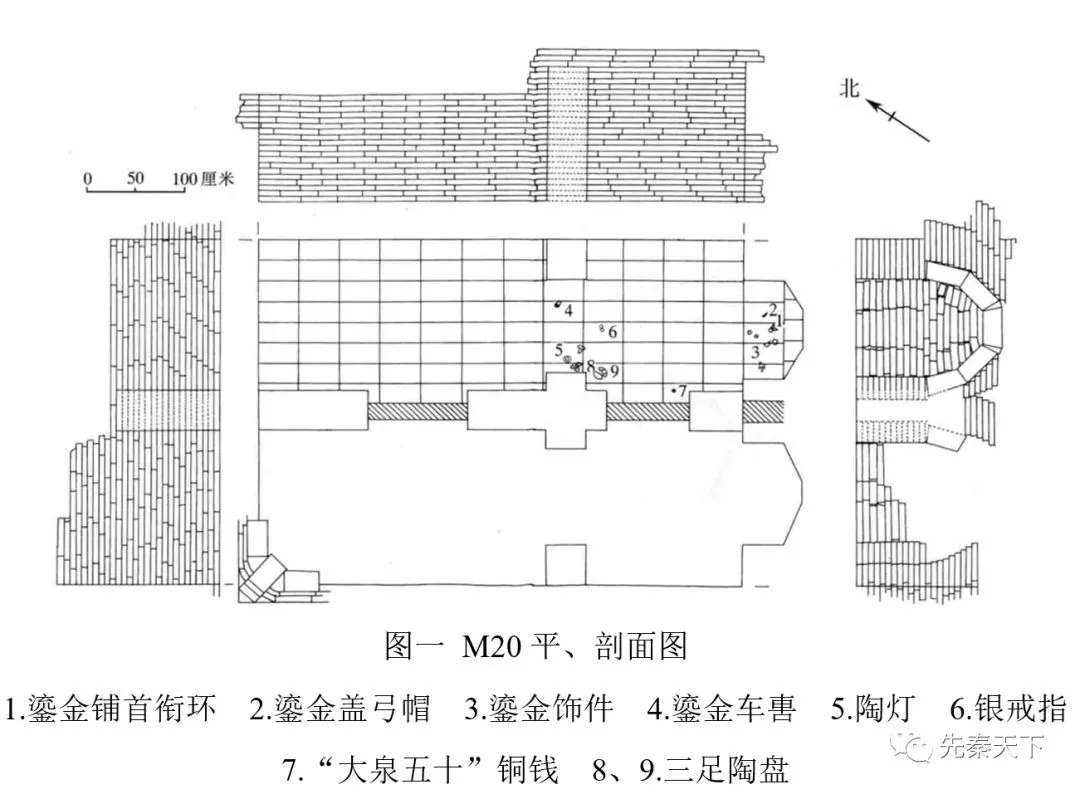 1977年,考古工作者在赫章可乐墓地第三次考古发掘中清理了砖室墓M20,《赫章可乐发掘报告》(下文简称《报告》)仅用“大泉五十”铜钱将M20年代定在新莽时期。[1]笔者在考察贵州地区汉代砖室墓时,[2]发现M20的断代值得商榷。本文将对M20的墓葬形制和随葬品进行重新梳理,期冀对其年代做出新的判定。