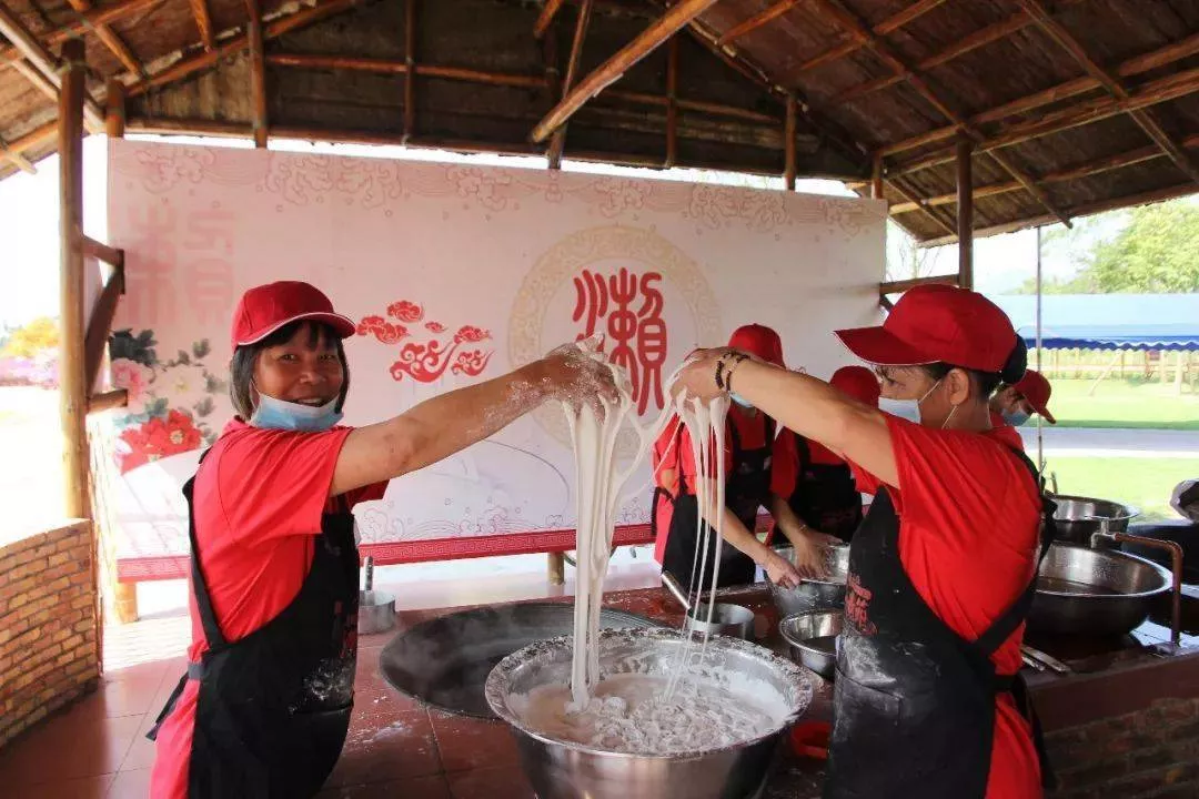(1)牛江镇知名濑粉厂现场展示制作濑粉,现场观众不仅可以目睹濑粉的制作过程,还可以在专人指导下亲身体验制作濑粉,趣味性十足!
