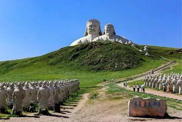 2,游览霍林郭勒的名片可汗山景区,观气势如虹的蒙古可汗皇帝雕像群;