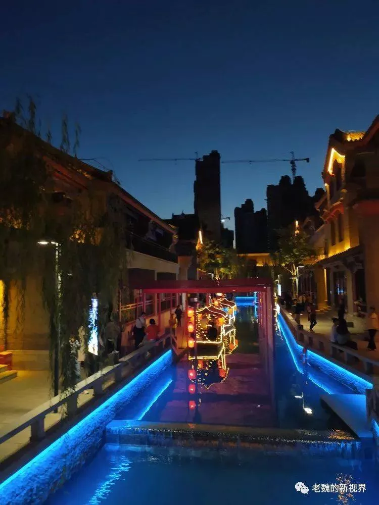 在柔美的霓虹灯下,站满了前来纳凉闲游的人群,扶老携幼,摩肩接踵,一改白天的清静。吆喝声、歌舞声、摇橹声接踵而来。