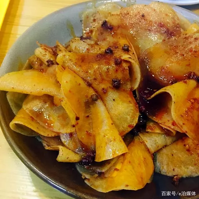 一家店撑起一个类别?因为在没有名字的“通渭路洋芋片”开业之前,这种吃法的洋芋片几乎找不到了。它基本上是十几年前中小学门口卖的零嘴的复刻版,洋芋片算不上独特,但这种吃法比较特别。用很麻辣的调料煮出来的薄洋芋片、豆皮,又香又辣欲罢不能。