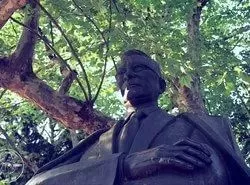 老舍先生的塑像就置身其间,目向前海,静默安详。“面朝大海,春暖花开。”如今人们心中的理想诗句,便附在先生的塑像上,守候着美好的岁月。