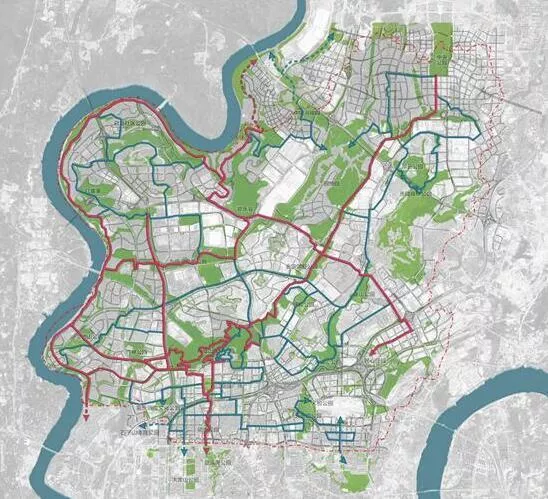 据两江新区官网,辖区结合全市开展的山城步道建设,打造兼具通勤与休闲功能,支持步行和骑行的绿道系统,该系统作为山城步道的重要组成部分,围绕金海湾公园、照母山公园等公园绿地规划绿道线路7条,以"两廊三轴"的空间布局打造道路。同时,多功能绿道系统将串联起辖区的17个主要公园绿地,沿途新建19处无障碍人行天桥,并与24个轨道站点和33个公交车站无缝接驳,绿道上将新建大量景观景点,种植名贵乔木、有色灌木、开花植物,增设休闲座椅、景观雕塑,打造一步一景、赏心悦目的园林景观。