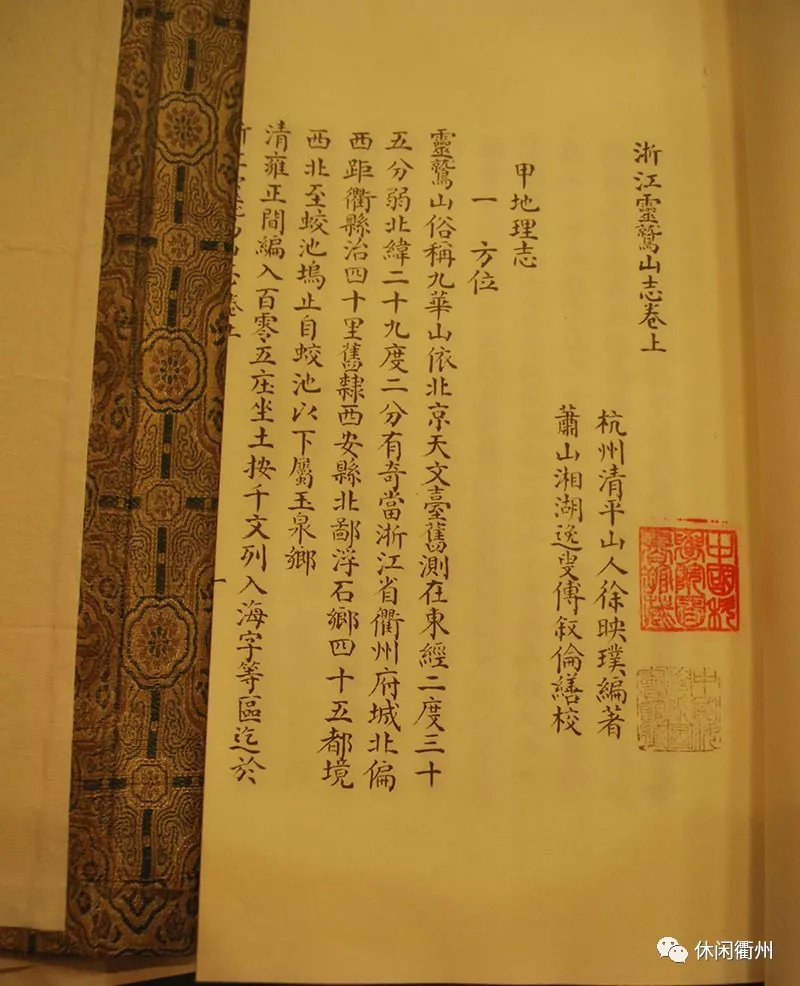 徐映璞《浙江灵鹫山志》分地理、梵宇、人物、物产、艺文、丛载等,全面记述了衢州九华山的历史文化内涵。一直以来,我市文史研究者都听说过徐映璞编著有《浙江灵鹫山志》,然没有一人见到过内容,这隐痛在三衢大地上的文化空白,于今天终获圆满。