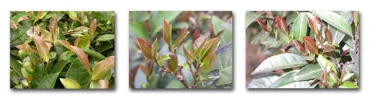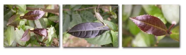 由于是群体品种,经过长期的自然选择,原种六堡茶具有较强的抗逆性和适应性。其个体间性状差异较大,六堡群体种的性状特征非常丰富,从芽叶色泽上分,有绿芽、黄绿芽、红芽和紫芽等多种。叶型有长叶、卵叶、普通、笋芽和米碎茶等几大类。