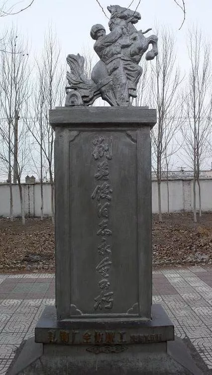 佳木斯轧钢厂全体职工1967年元旦时敬铸的刘英俊烈士拦惊马铸铁雕塑。