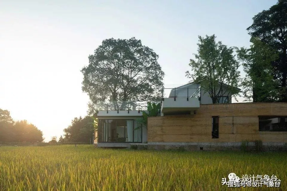 建筑设计构思:“绿波春浪满前陂,极目连云耙稏肥”,圆弧形的夯土围墙上,制造出许多不同大小的洞口,使厚重的围墙变得通透起来,内外互通的设计,塑造轻盈流动的氛围。