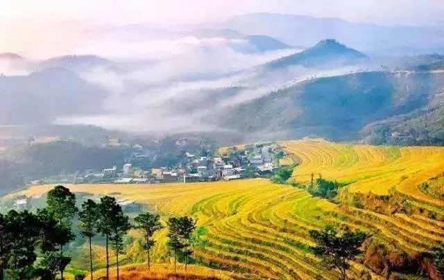 面对角峰梯田,这片神奇的土地经历了600余年的春华秋实,一 株微不足道的稻禾造就了今天仿似鬼斧神工的梯田。开始蓄水耕种的春天梯田和一片金黄等待收割的秋天梯田,是角峰梯田最美的时候。