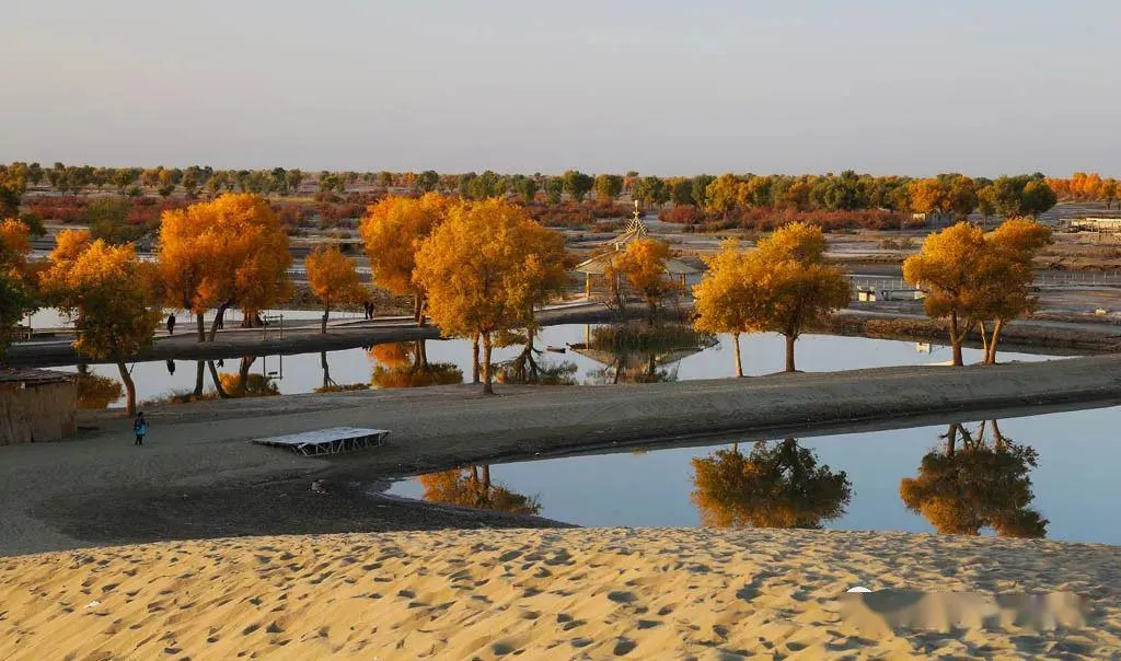 新疆网讯 (通讯员张金晨 李勇)随着今年塔里木河第十八次生态输水的顺利进行,不仅为塔里木河下游胡杨生长和植被萌发创造了良好条件,也让尉犁县罗布人村寨景区“容颜焕发”,景区内形成了一片片海子,塔河、沙漠、胡杨交相辉映,成为秋季景区的又一道靓丽的风景线,吸引着四面八方的游客。