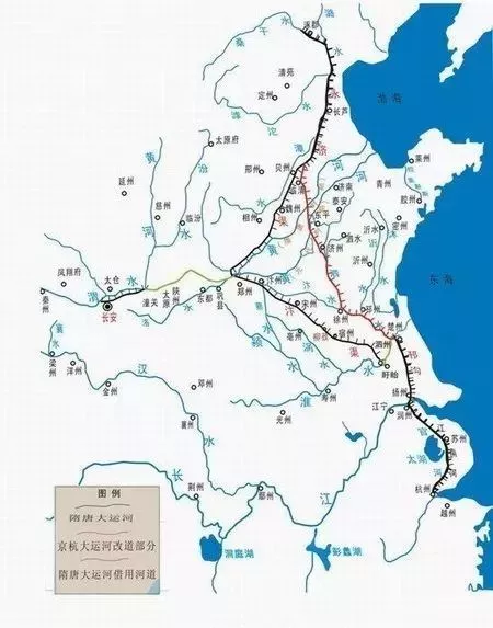 隋唐时期开辟运河,以长安和洛阳为中心,北至军事重镇涿郡,南至杭州。其中北段从洛阳以上成永济渠,北至幽州;南部通济渠则分为两段;西段自洛阳引洛河和谷水入黄河;东段自荥阳汜水引黄河循汴水入淮河。