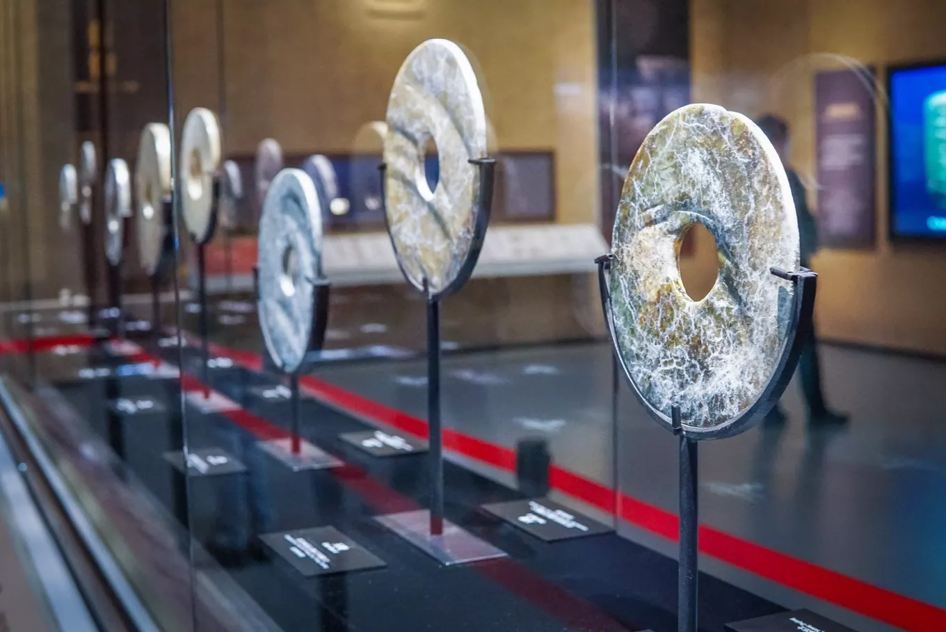 良渚从早期到晚期出土了大量的玉璧,形状也由早期的小璧直径基本不超过10厘米,到晚期的直径30厘米的大璧,尤以反山墓葬群单个墓葬有出的情况来看,最多出土54块的,有出土40多块的,也有出土20多块的,如此大量精美的玉璧出现,且少数级别较高的墓葬中出土的玉璧上,有的有简化神徽纹、兽面纹或鸟纹,有的还撰刻玉兆文,在当时应该是有特殊意义。