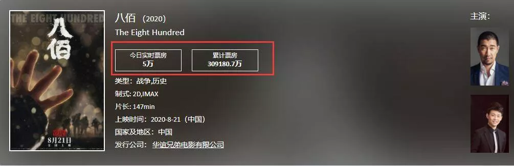 作为2020第一部“王炸”,《八佰》目前的票房已超30.9亿,某瓣评分也停留在7.7。