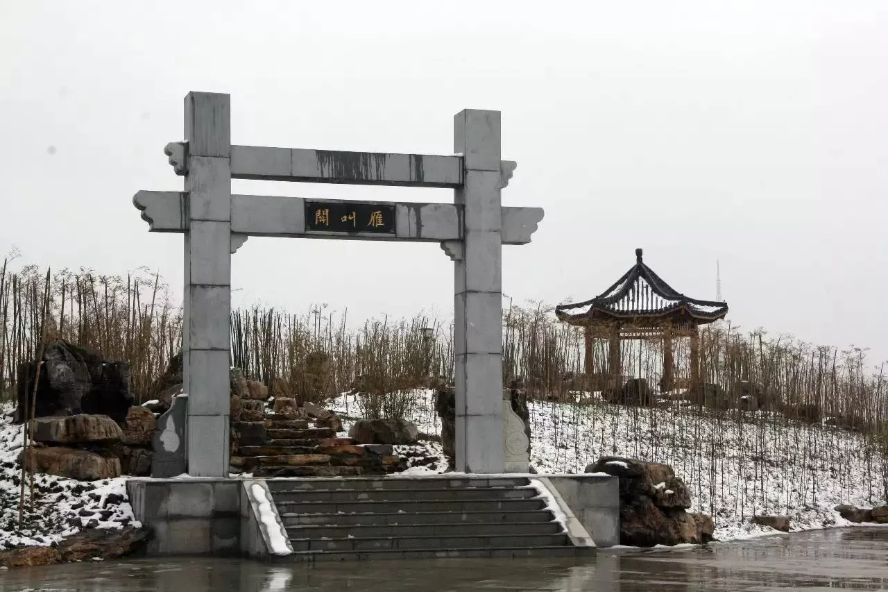 为纪念茶圣陆羽,唐末时雁桥南端的水巷口竖起一座牌坊命名“雁叫关”。市政府在兴建陆羽故园时,将毁废已久的雁叫关牌坊,复建于今西塔寺山门外右近的西湖北岸。前面这个牌坊便是雁叫关,后面是双季亭。