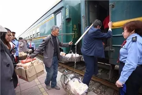 在这趟火车上,还有二三十名特殊的乘客,那就是沿途上车挑着担子的“卖货郎”,他们从山区中走出来,把自家的农产品挑上车,带出大山到城里去出售。