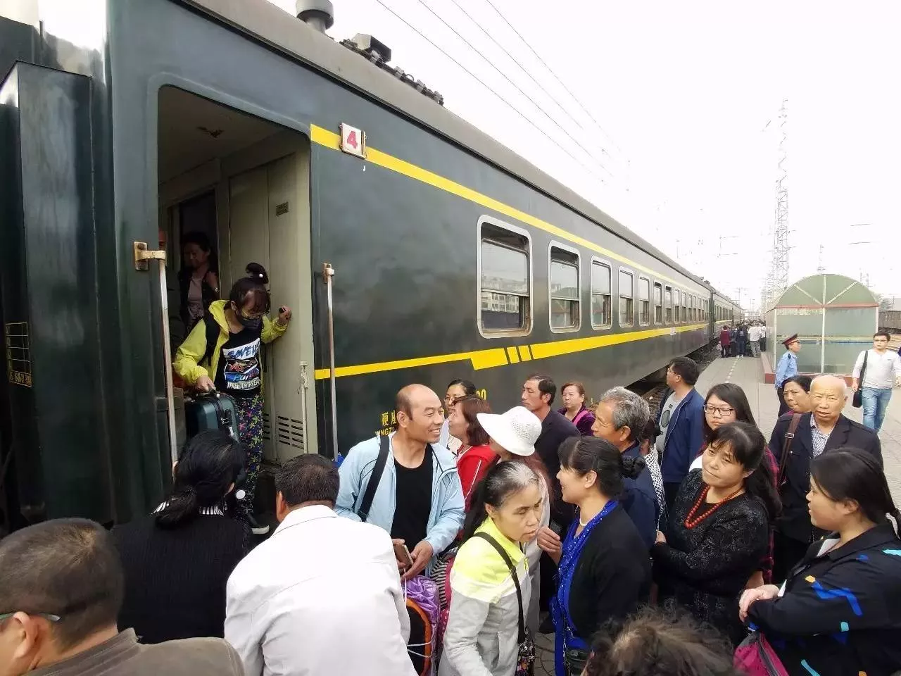 和旁边停靠的其他列车相比,这列墨绿色的列车看上去“苍老”了许多。但这丝毫不影响它的受欢迎程度,检票的闸口一开,旅客就如潮水一样冲上了站台。