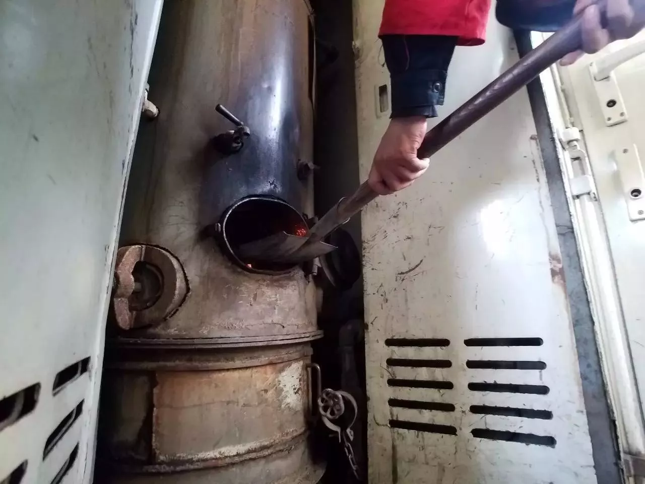 “绿皮车”上没有自动加热水的电热炉和空调,烧水、取暖采用的仍然是最传统的方式:煤火。