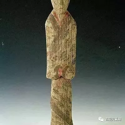 戴冠木俑