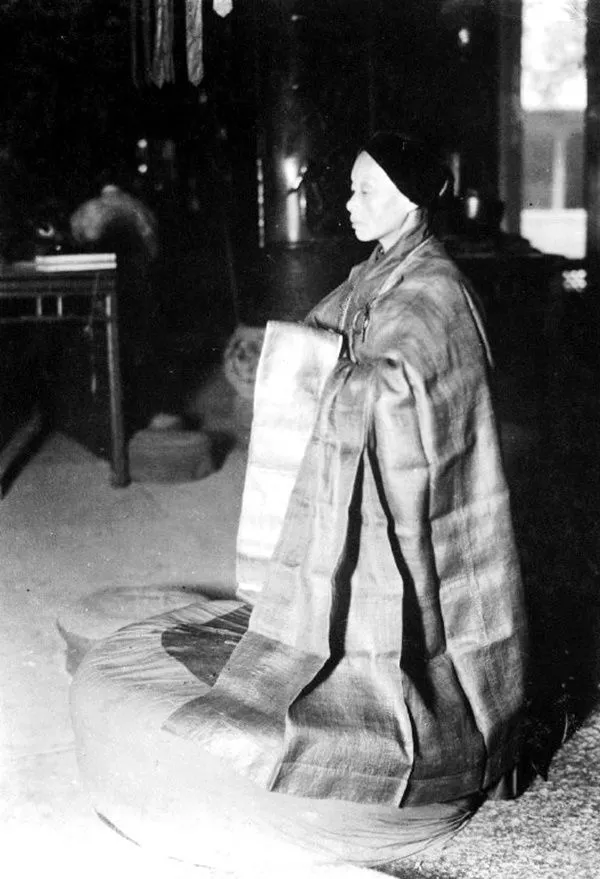 普陀山在佛教中的地位,正如普济寺前一副对联上写的一样“五朝恩赐无双地,四海尊崇第一山”。这是更是著名的观音道场,观音文化是普陀山最大的标签,常年佛光普照,香火不息。这些照片是民国时拍摄的普陀山的淳朴风貌。(常年坐在山道旁敲着木鱼的修行僧人)