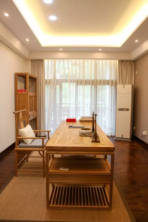穿过庄园前厅有一个茶室,四面都是落地窗,疏影横浅,树的影子在木质茶几上轻轻摇曳。整个茶室处在水池中间,有小石板引路,方可进入。茶室需要提前预定,一对一的私人服务,尊贵级的享受。茶是来自云南的千年古茶,一小撮茶叶泡开来,芳香四溢,带着淡淡的木质香味混合着泥土的芬芳。稍稍抿上一口,化解心头千千结。