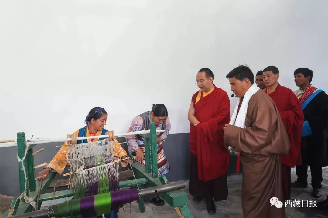 十一世班禅大师在达曼村传统手工艺加工合作社调研村集体经济发展情况。
