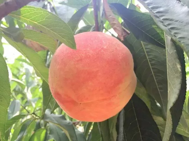永莲蜜桃属于大型果,平均单果重420克,最大果重700克,果实圆,果面平滑,着色度80%为红色,完全成熟时果皮易剥离,果肉白色,无红色素,粘核,硬溶质,精纤维少,肉质细腻,风味香甜,在室温下可存放15天以上,原口味不变。