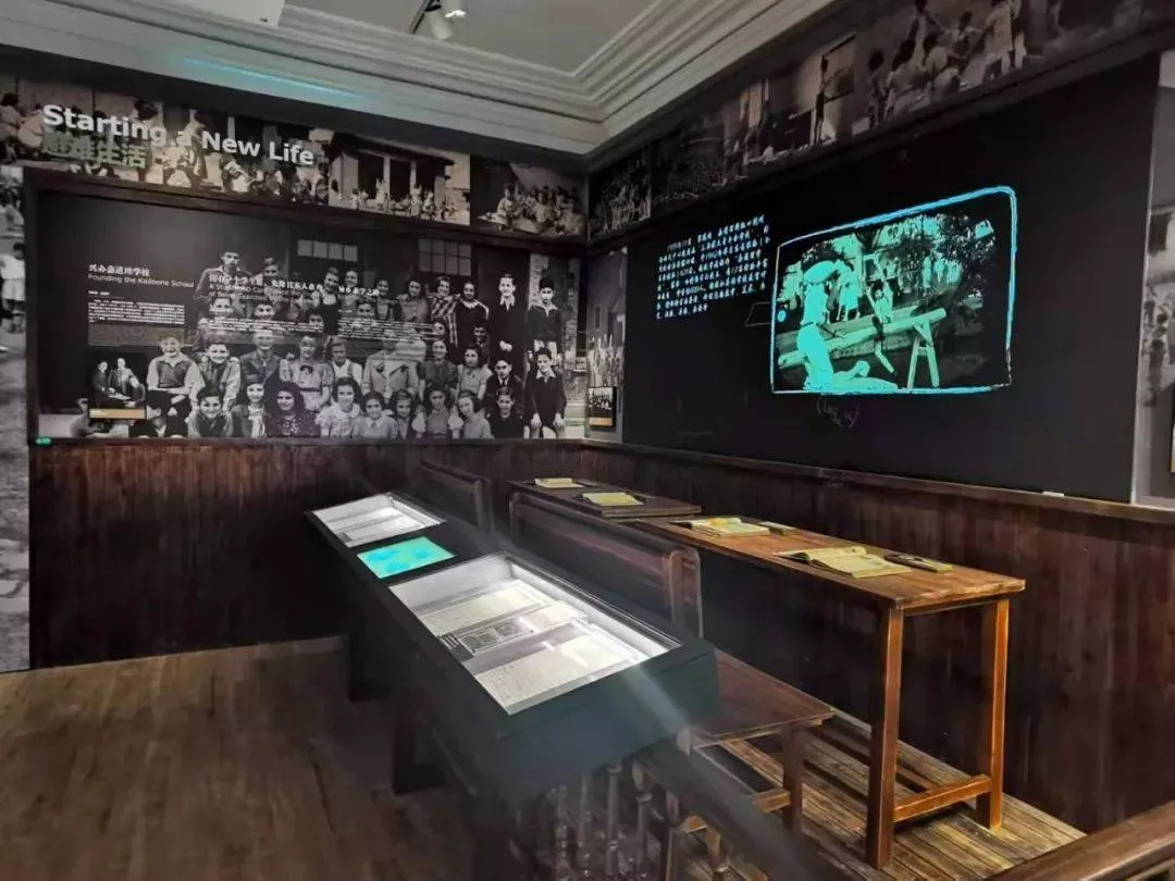 与以往不同,新馆整个展厅以“沉浸式”的氛围,带着参观者以“听故事”的方式,去了解这段历史往事。参观者可以通过浏览影像资料,听犹太难民亲口说一说当年经历;可以通过一件历史文物,了解犹太难民如何从海上逃亡到上海;通过一个复原场景,知道犹太难民和上海邻居的生活环境;更可以通过一部历史短片,快速了解历史背景。尤其展馆序厅部分,通过多媒体影像装置实现了类似肉眼3D的特殊效果,让参观者瞬间就融入凝重的历史氛围之中。