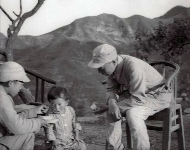 这张照片是一个战地记者为聂荣臻和美惠子拍下的,照片里,高大的聂荣臻将军牵着身边小小的美惠子,美惠子好奇地盯着镜头,两个人显得十分和谐。这样珍贵的画面,不知道以后,还会不会见到了。